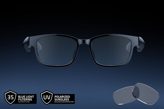 Razer Anzu Smart Glasses - Rectangle Design - Blue Light and Sunglass Lens Bundle