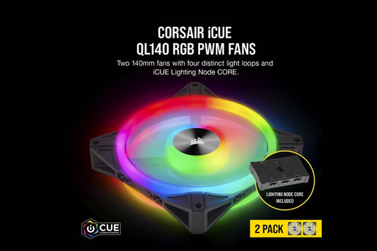 Corsair iCUE QL140 RGB 140mm PWM Dual Fan Kit with Lighting Node CORE