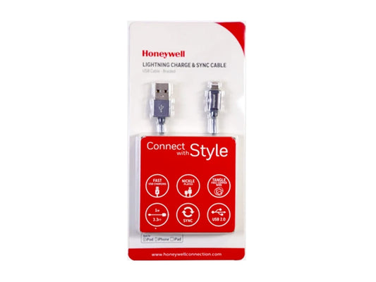 Honeywell Apple Lightning Sync & Charge Cable 1.2 Mtr (Braided) Silver