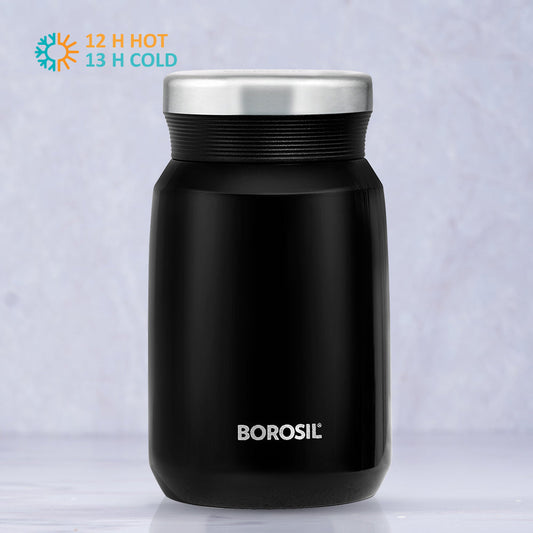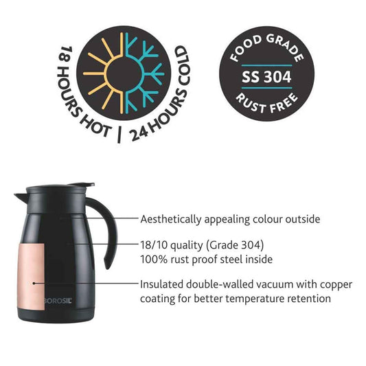 Borosil Stainless Steel 500ml Teapot with Handle | Double Wall Vacuum Insulated Thermosteel Carafe | BPA Free Jug for Tea/Coffee & Juice | 12 Hours Hot & 14 Hours Cold | 1 Year Warranty, Black