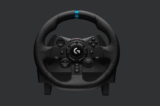 Logitech G923 Racing Wheel and Pedals,Genuine Leather Wheel Cover for PS5, PS4, PC - Black