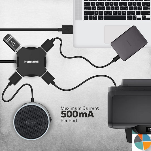 Honeywell 4 Port USB Non-Powered Hub 2.0- Black 1.2M Length Cable, 90 Gram (HC000011/LAP/NPH/4U/BLK)