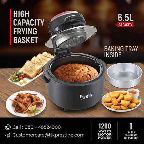 Prestige Multi-Chef All-in-One Air Fryer |80% less Oil Consumption|6.5L Capacity |1200 Watts Power|Airfry,Oven, Toast, Grill|See Through Lid|Advance Digital Display|Even Heat Distribution|Black
