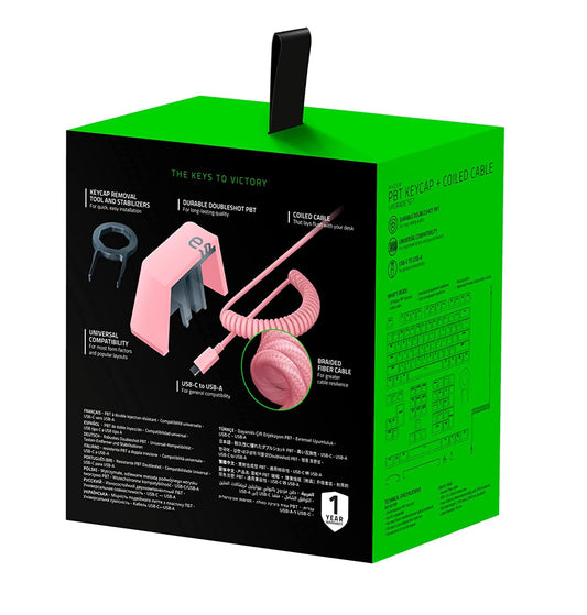 Razer PBT Keycap Coiled Cable Upgrade Set Durable Doubleshot PBT Universal Compatibility Keycap Removal Tool & Stabilizers Braided Fiber Cable Quartz Pink RC21-01491000-R3M1