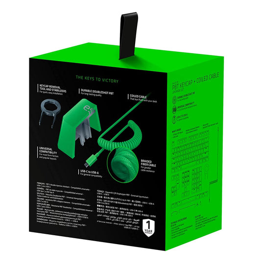 Razer PBT Keycap Coiled Cable Upgrade Set Durable Doubleshot PBT Universal Compatibility Keycap Removal Tool & Stabilizers Braided Fiber Cable Green RC21-01490700-R3M1