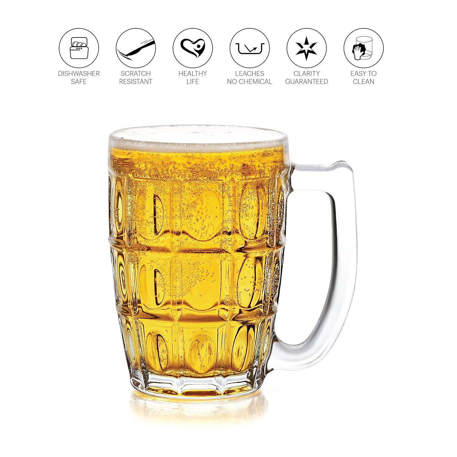 - Durable Construction: Made from premium-quality glass, these beer mugs are built to last. Their durable construction ensures they can withstand the rigors of daily use, making them a reliable companion for your drinking needs.
