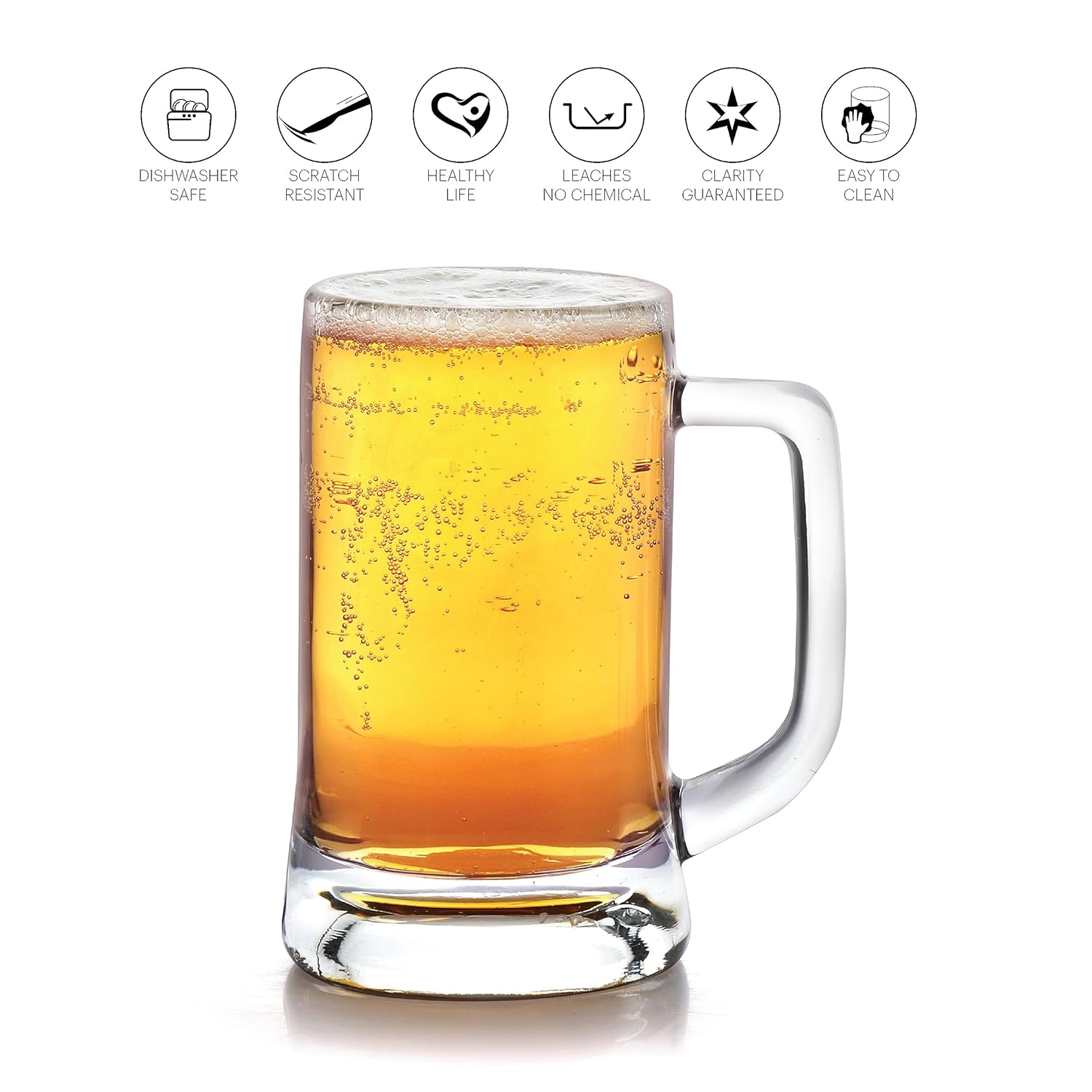 - These beer mugs with handles are dishwasher safe and ultra-durable so you can give them a quick clean without worrying about breakage