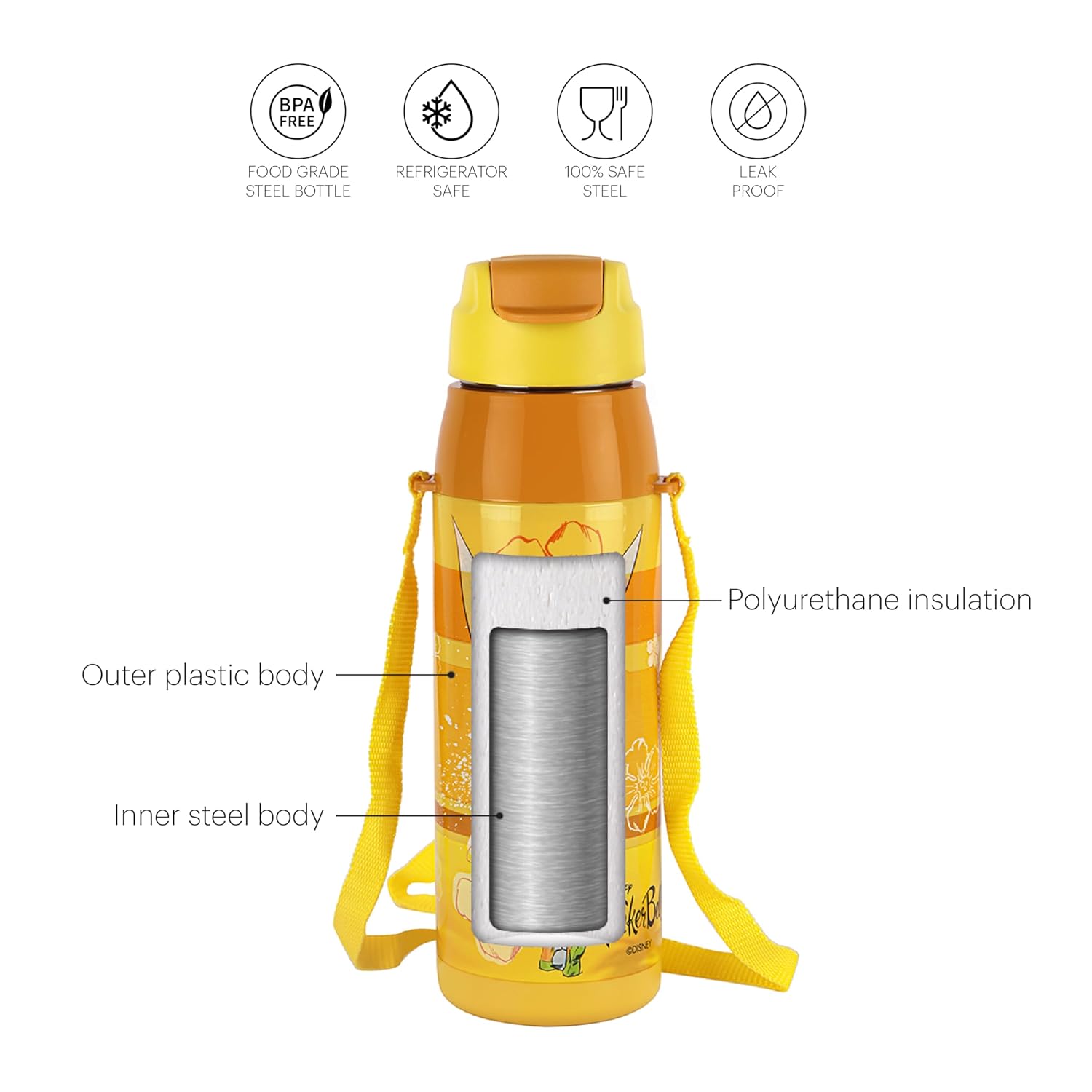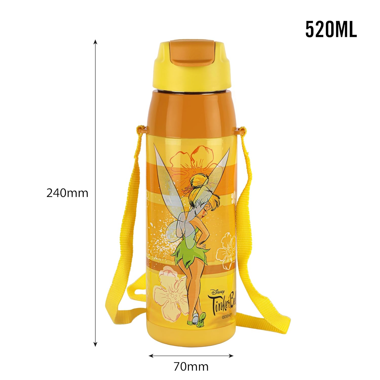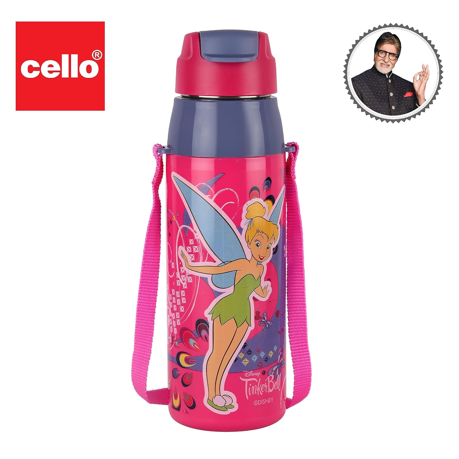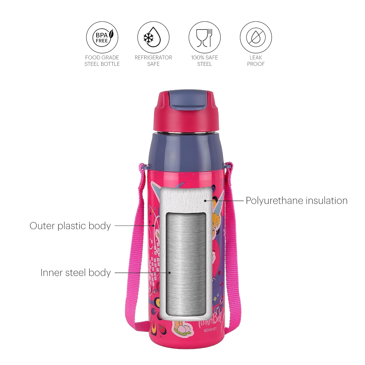 CELLO Puro Steel-X Hydra Kid 600 Water Bottle | PU Insulation | School Bottle | Picnic Bottle | Cold Insulation | Leak Proof | Kids Bottle | Easy to Carry | Tinker Bell | 520ml