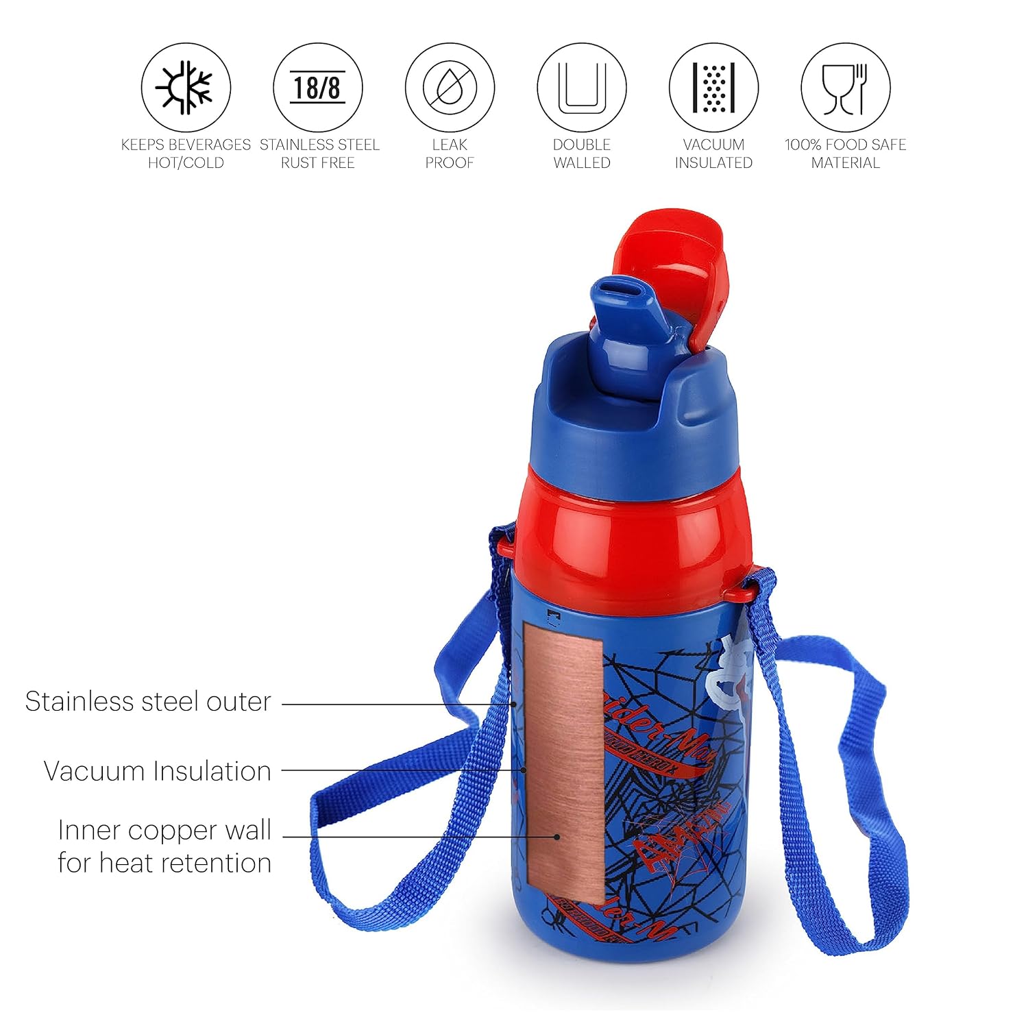 - Covered Drinking Spout-It features a covered spout that prevents dirt and contamination from entering the bottle, maintaining the hygiene of your child's drink.