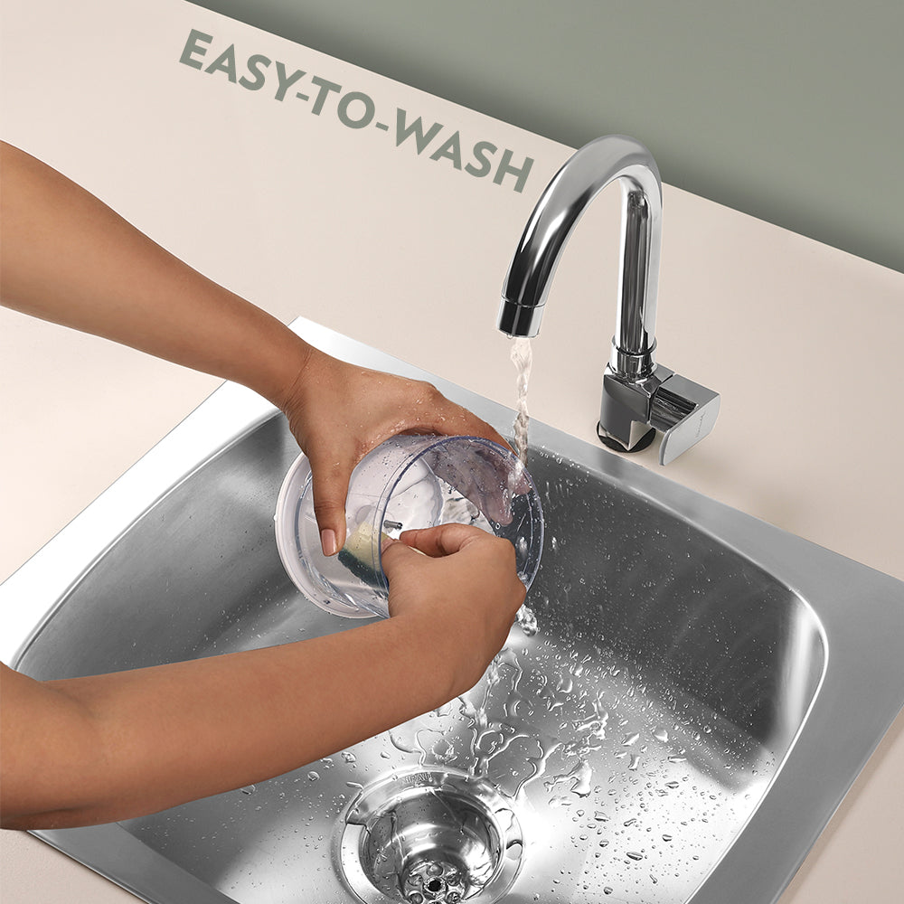 - Convenient 'Chop-Serve-Store' Bowl: Our mini chopper for kitchen use comes equipped with a 500 ml plastic bowl and lid, making it the ideal vegetable cutter for kitchen enthusiasts who appreciate easy storage.
