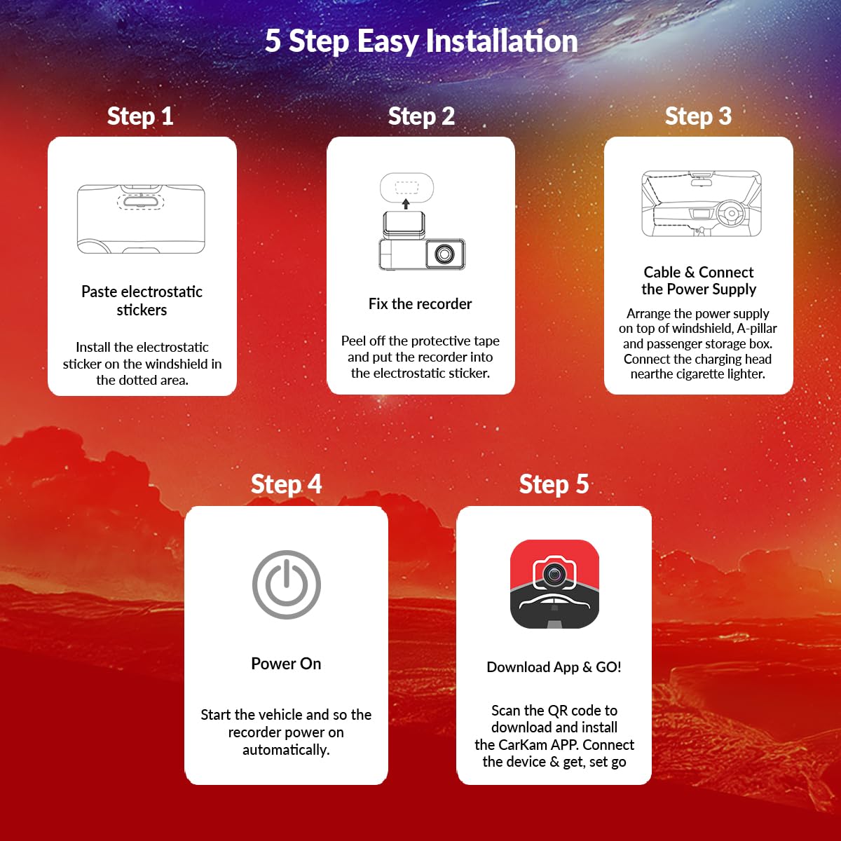 - Supports H.265 Vido Encoding and Easy to Install : Streamlined installation and user-friendly design make mounting hassle-free. Intuitive CarKam setups ensure quick and secure attachment, promoting accessibility and convenience for users.
