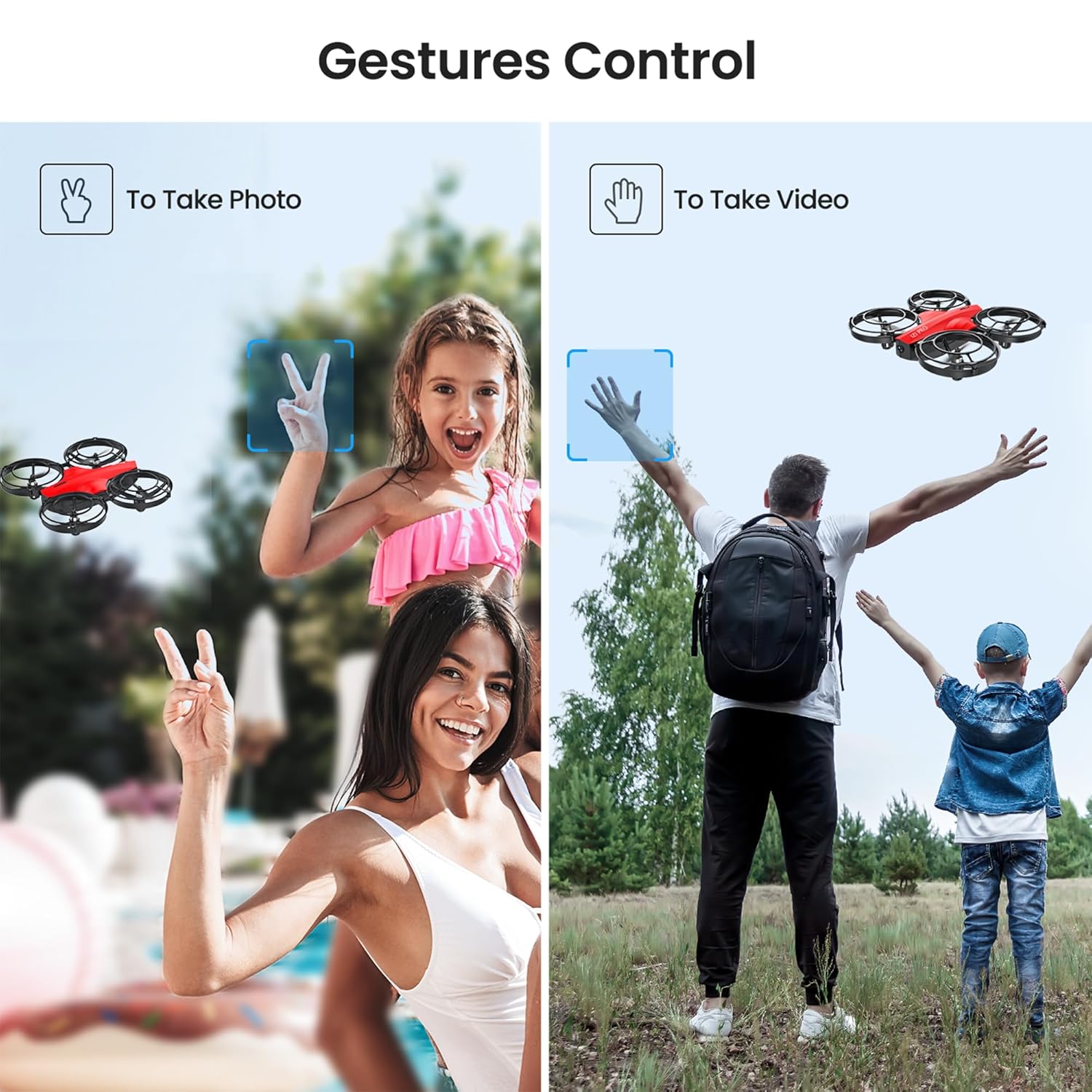 - Multifunctional Drone & Endless Fun – Altitude hold: Auto hovering is an altitude holding technology that lets the flying drone stabilize and suspend in mid-air automatically, even when you let go of the controls.