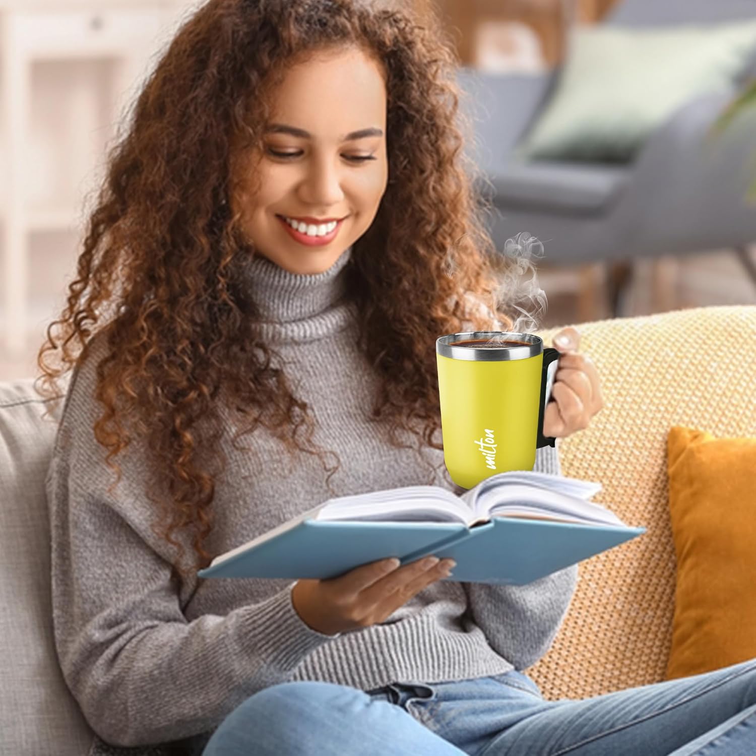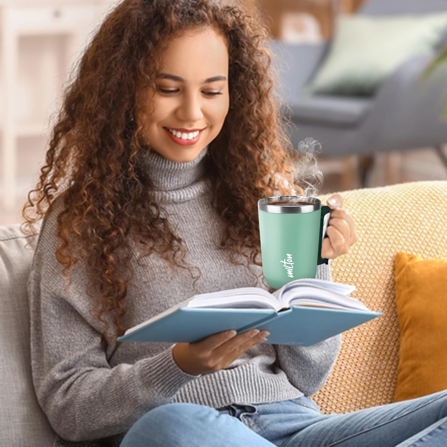 MILTON Cool Touch Coastal Coffee Mug 350 Double Walled 300 ml Inner Stainless Steel Tea Mug and Lid, Coffee Mug Travel Tea Cup, Black Coffee, Single, Blue