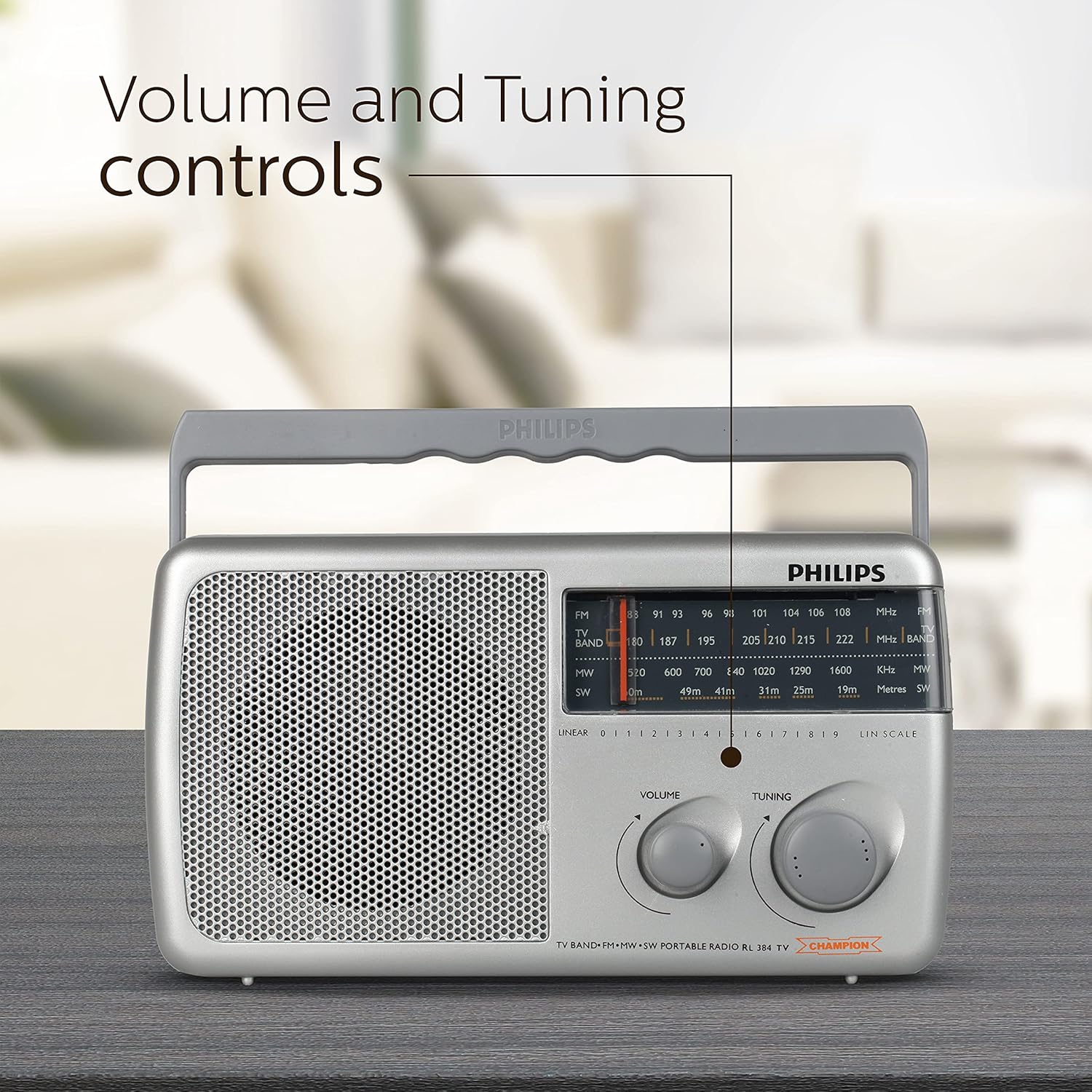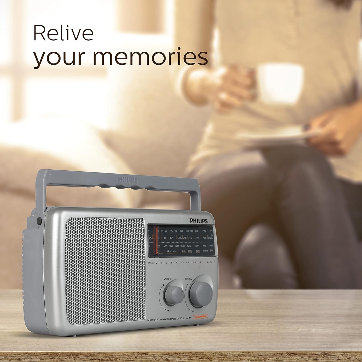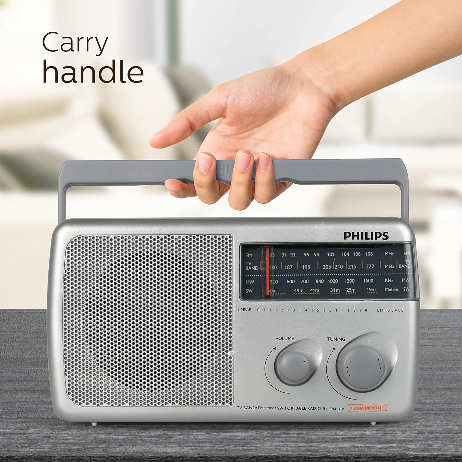 Philips Radio RL384/94 with MW/FM/SW/SW2 Bands, 500mW RMS Sound output, Battery: 3xR20 (4.5V DC)External DC SOCKET: 4.5V DC, Without Battery/Adaptor