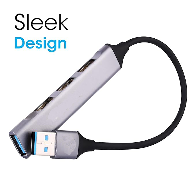 USB 3.0 4 Port hub with Hi Speed Data Transfer, Aluminum body, Sleek Design and Plug Play Usage