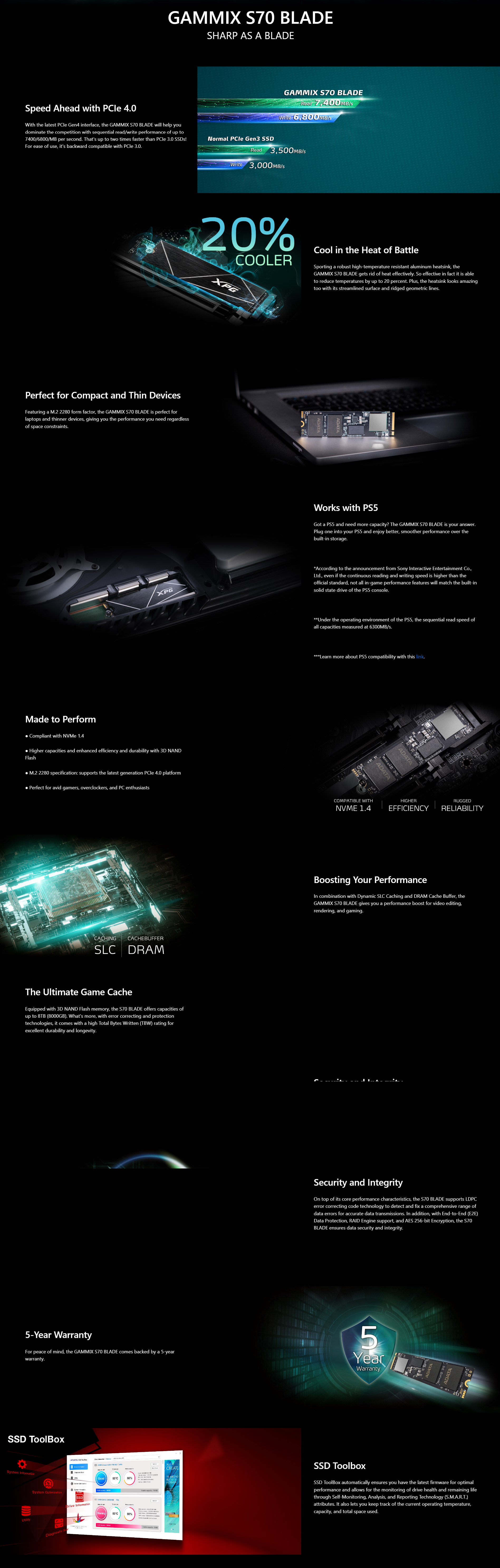 XPG GAMMIX S70 BLADE PCIe Gen4x4 M.2 2280 Solid State Drive
